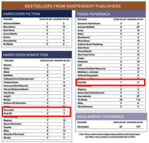 Post Hill Press is represented in the 2021 Publishers Weekly Bestseller Breakdown in the Independent Publishers Hardcover Nonfiction and Trade Paperback categories! Read about it here.